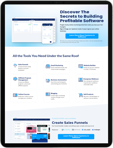 a saas platform helping you building out sales funnels for your online business. Countless Features To Choose From.